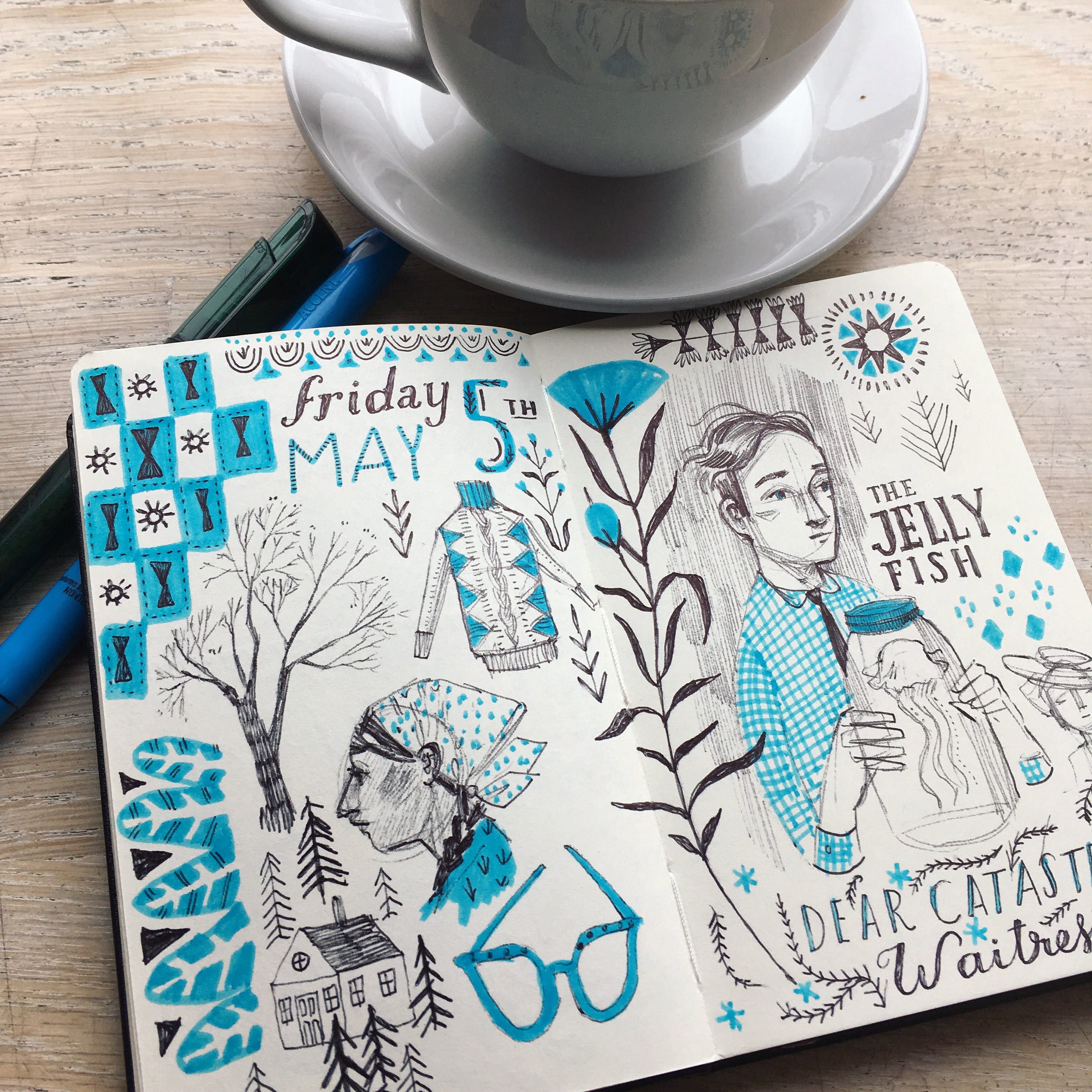 Oh I love your art! Wish I could make my journal pages look like that! Would you mind telling me what supplies you used in the top picture (with the jellyfish)? Thank you!